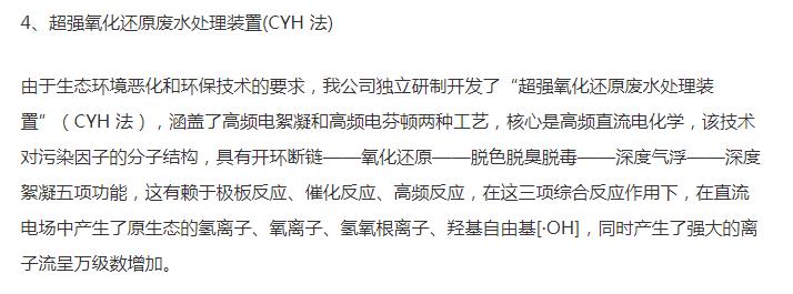 超強(qiáng)氧化還原廢水處理裝置(CYH法)處理各種有機(jī)廢水、各種重金屬廢水